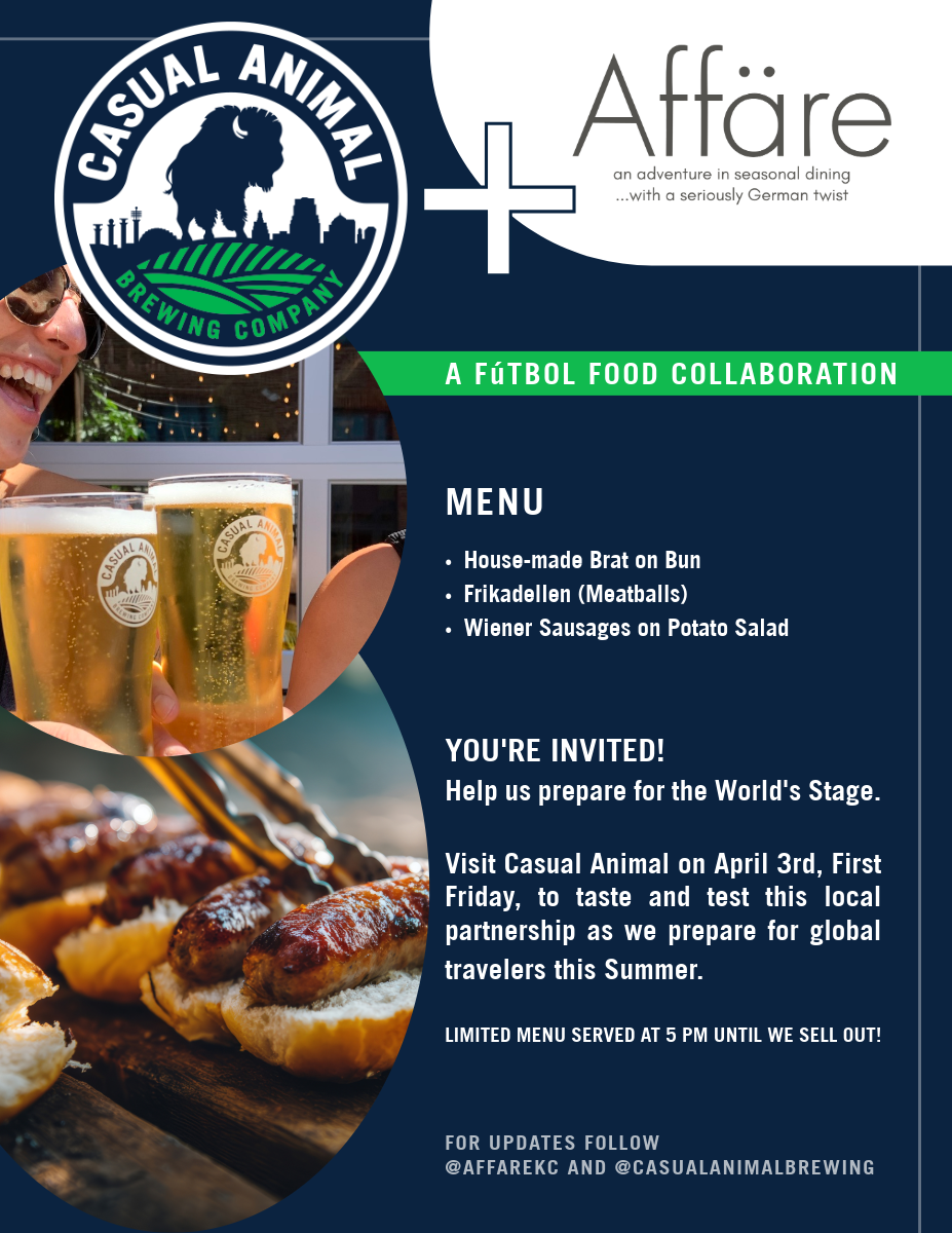 We are crazy excited to announce our food partnership with @affarekc in anticipation of the World (Stage) ⚽️ this summer! We formally invite you to our April 3rd First Friday where we will be taste-testing and trialing our collaboration. Your feedback and help as we ready all systems would mean, well, THE WORLD 😉 .