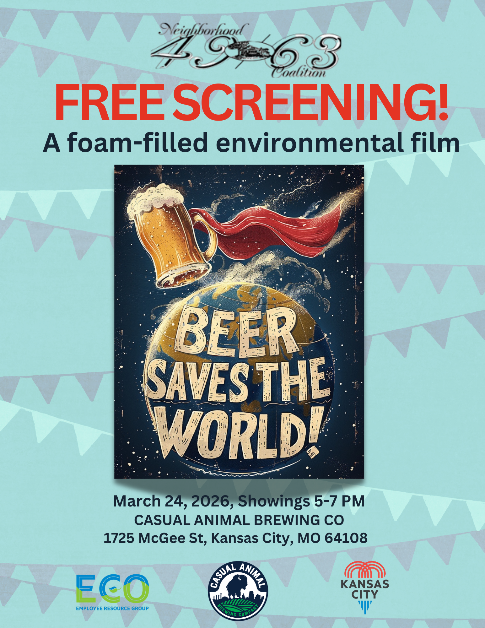 The City of Kansas City invites you to a green happy hour at Casual Animal Brewery to watch a short film (11 min.) and share a beverage with your favorite green action community members!