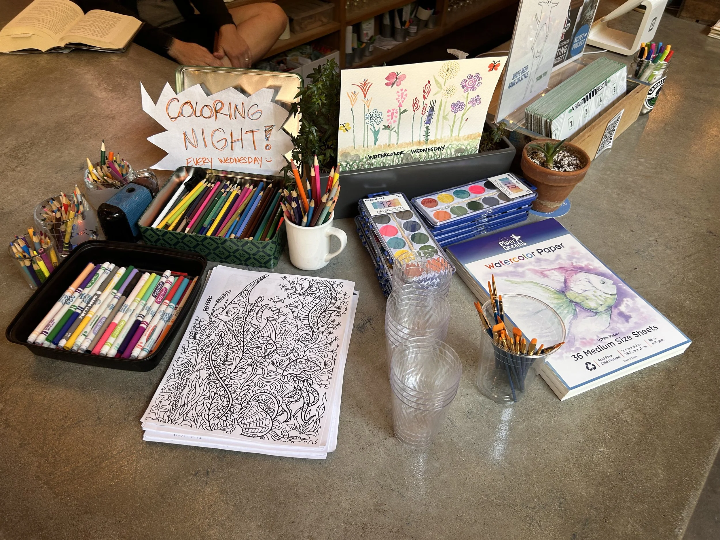 π» Grab a beer, bring your own materials, or use the colored pencils we have at the bar.